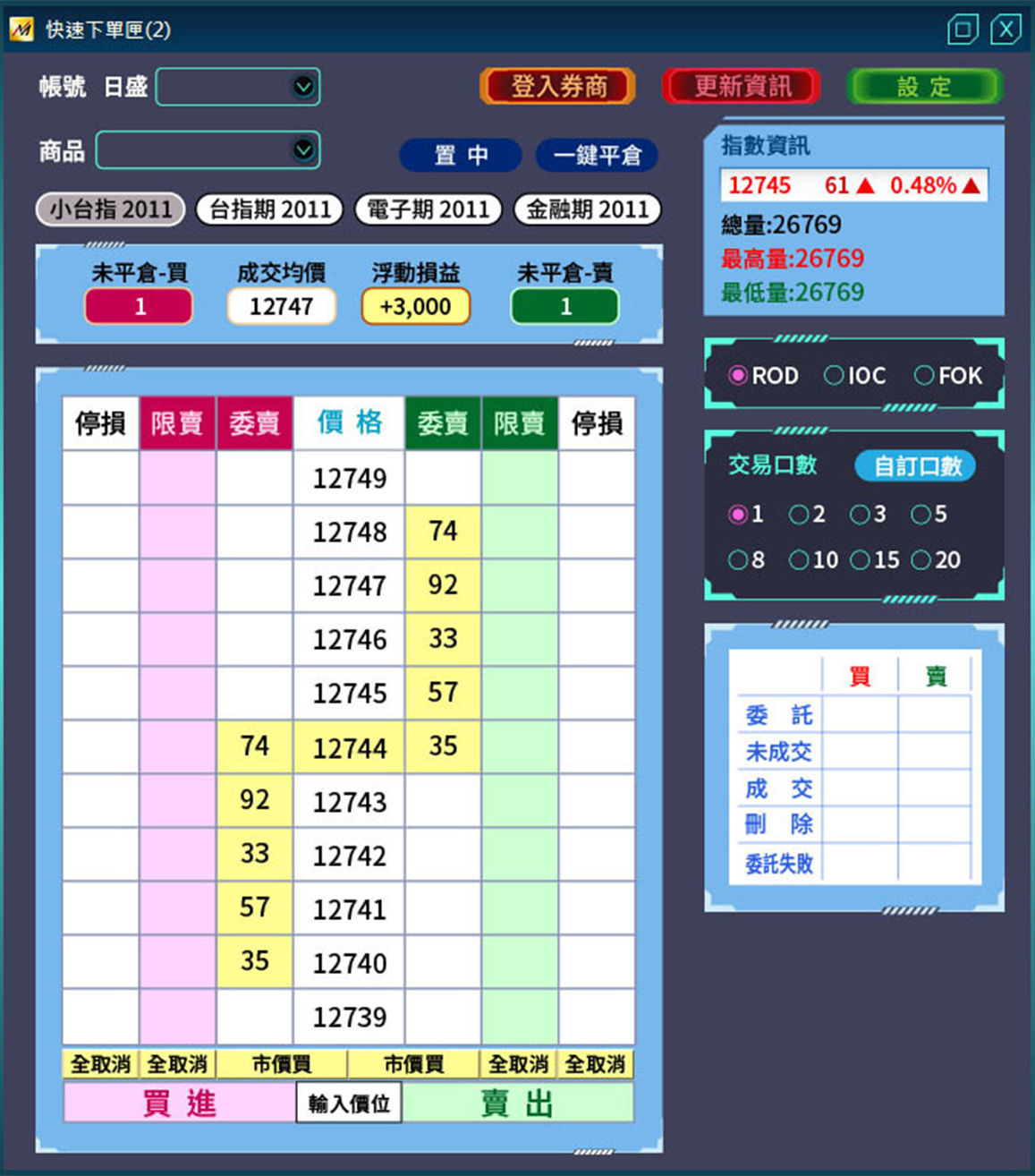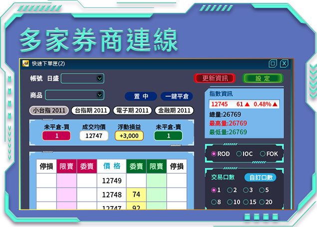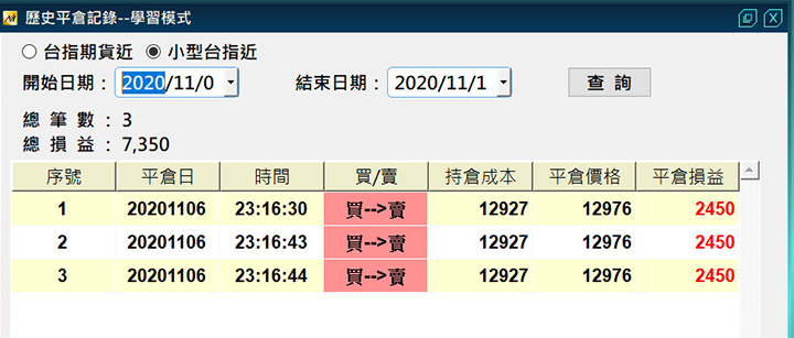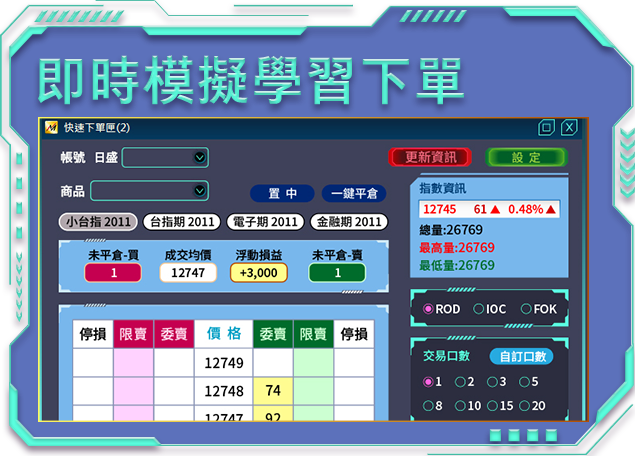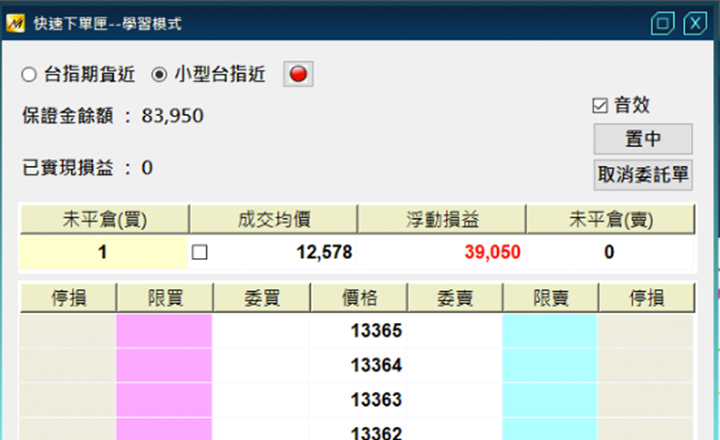 學習模式內含台指期及小台指兩種倉位,並含有保證金額度